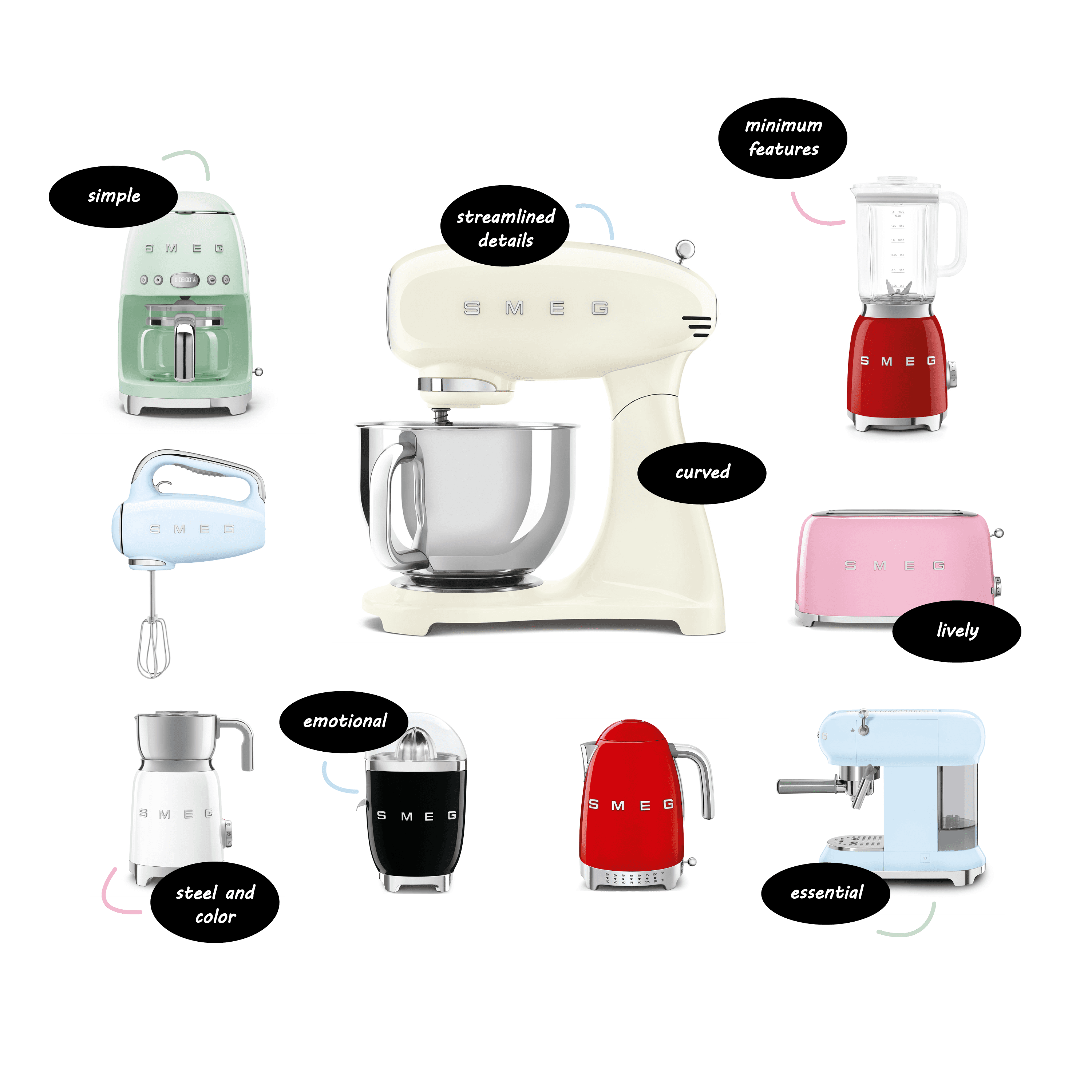 SMEG appliances are designed using "the super ellipse" the geometric shape devised by the Danish scientist Piet Hein, who was also a mathematician, an inventor, a writer, and a poet.
